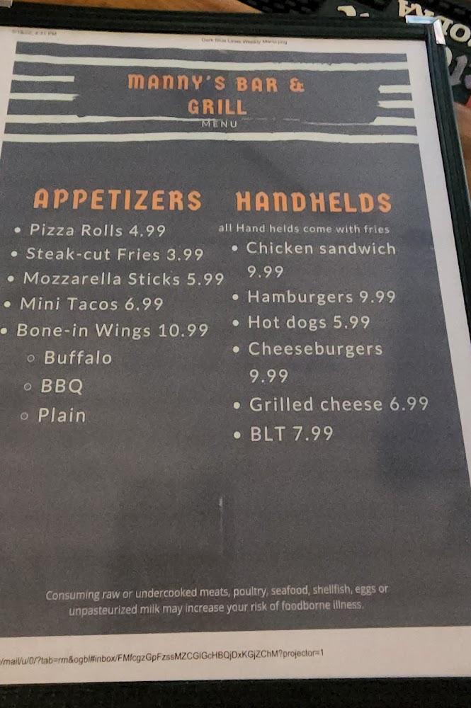 Manny's Bar and Grill offers a simple yet satisfying menu. Appetizers like Chili Cheese Fries and Onion Rings are crowd-pleasers. A variety of quesadillas, both chicken and cheese, appeal to different tastes. For heartier meals, burgers are a staple. The prices remain budget-friendly, with an average cost under $10. Seasonal and happy hour specials ensure there's always something new to try. Each dish maintains the comforting quality that makes dining enjoyable.